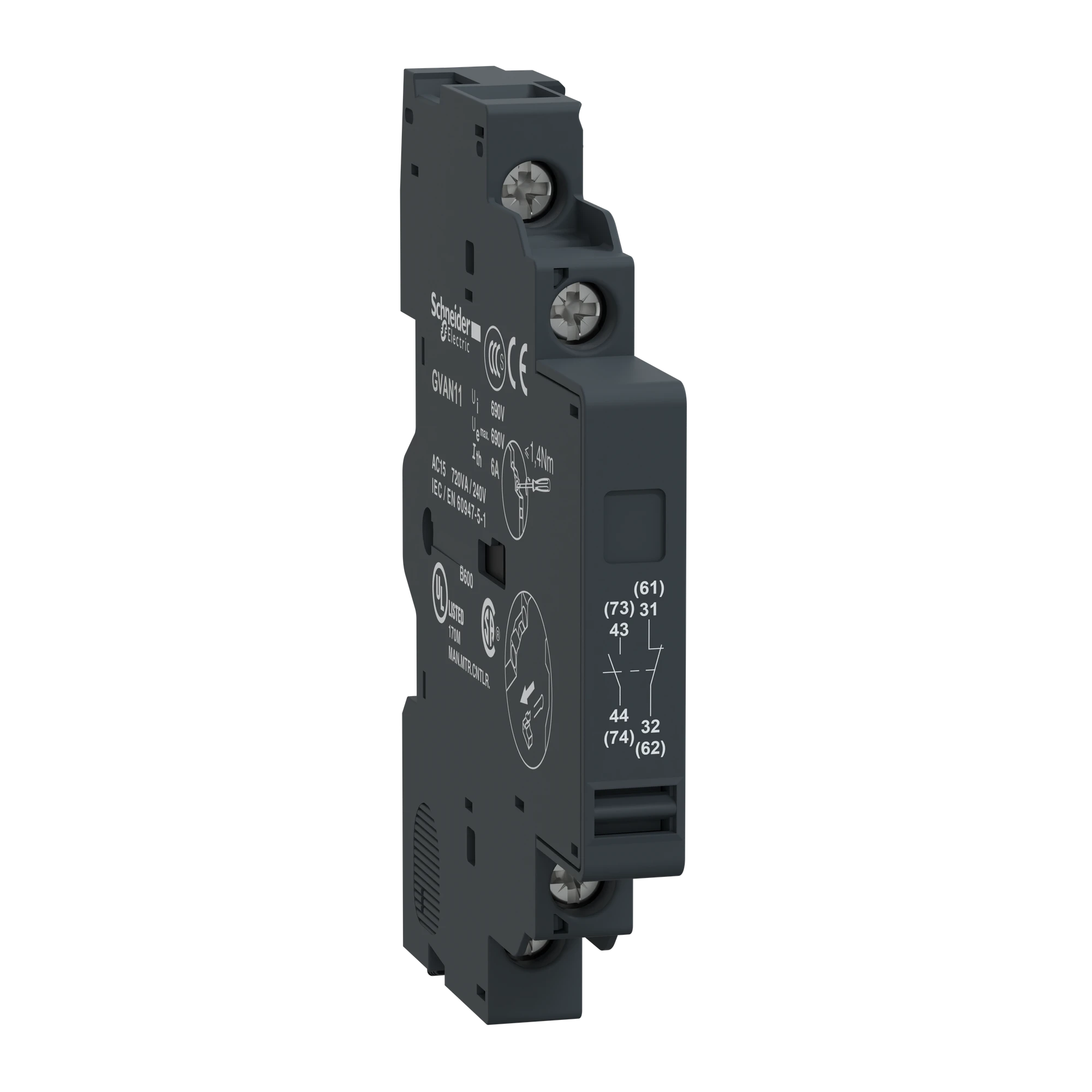 Schneider Electric GVAN11TQ Auxiliary contact, 1NO+1NC, side-mounted