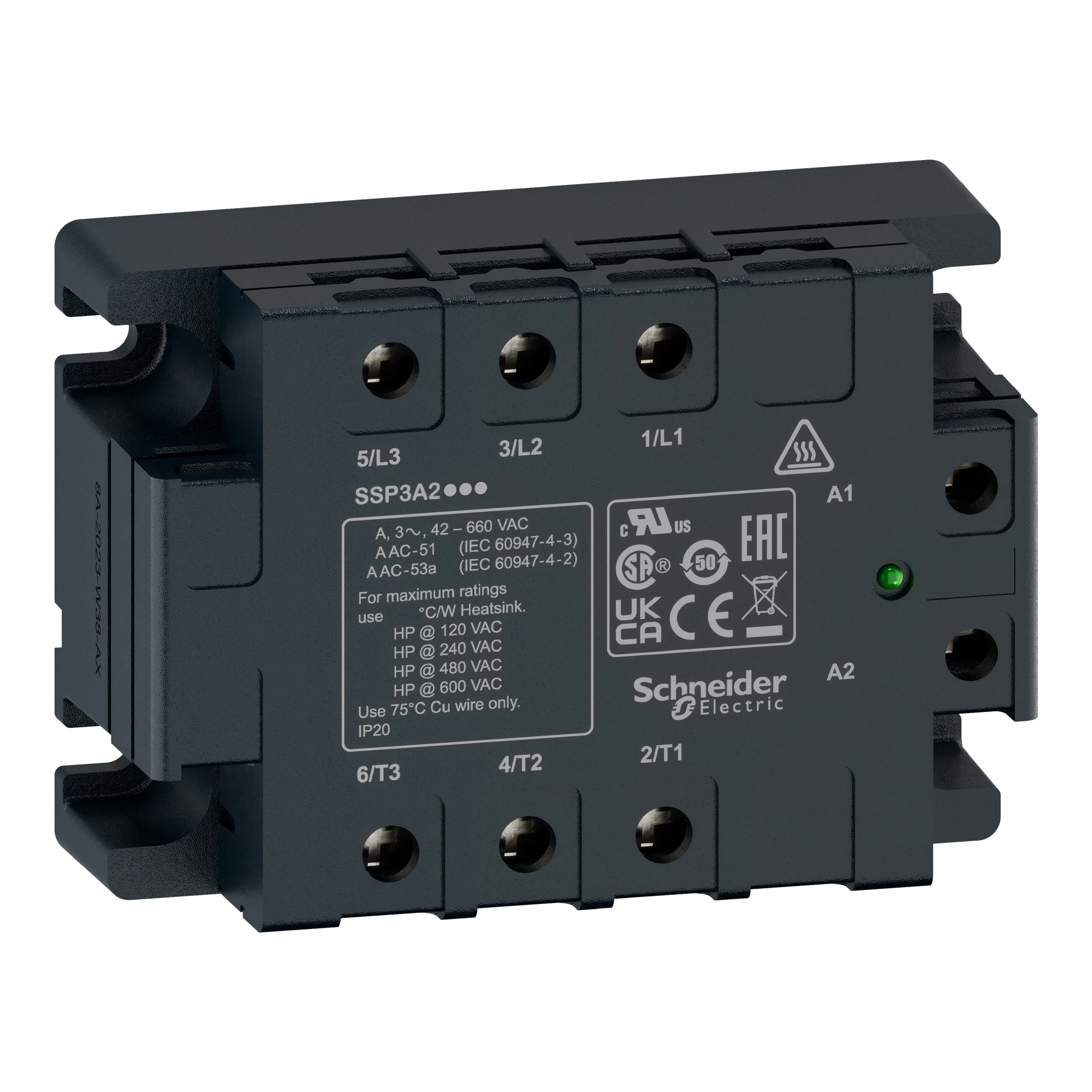 Schneider Electric SSP3A250P7T Semiconductor Relay, 48-530 VAC, 3x 50 A, zero voltage, I: 180-280 VAC, Heat Transfer Sheet (img_001)